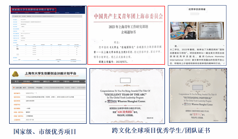 学生参加跨文化交流实践活动获得各类荣誉: