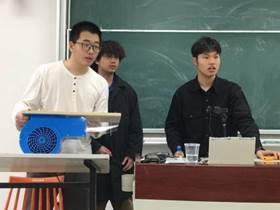 以小组课题“‘洗澡神器’中的力学知识及应用”为例,“洗澡神器”可用于解决在没有热水器条件下大学生宿舍如何洗热水澡的问题。该小组课题研究选题新颖、贴近大学生活,小组成员制作了23页逻辑清晰、内容丰富的PPT报告,附图中给出了开展文丘里效应和虹吸效应实验的情形。通过该课题研究,小组成员主要在以下几个方面得到提高:1)掌握了与本课题相关的力学知识和相关实验技能;2)自主设计实验和开展实验,培养了创新能力和实践能力;3)自主选题、自主制定研究计划和自主开展研究,提升了学生开展学术研究的综合能力;4)研究小组合作分工,培养了团队协作精神。