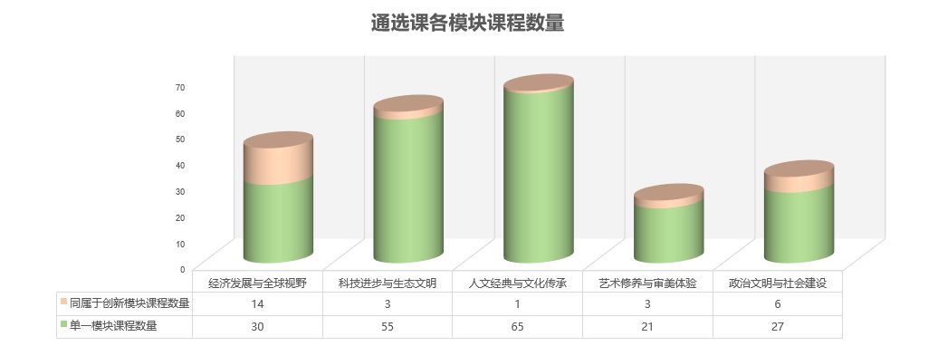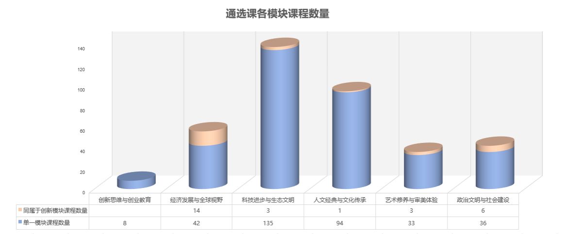 2025级及以后学生目前可选通识课共计427门,其中通选课375门,核心通识课52门(数据统计截至2025年7月),实际可选课情况以每学期开课情况为准。通识课各模块课程分布情况见下图所示: