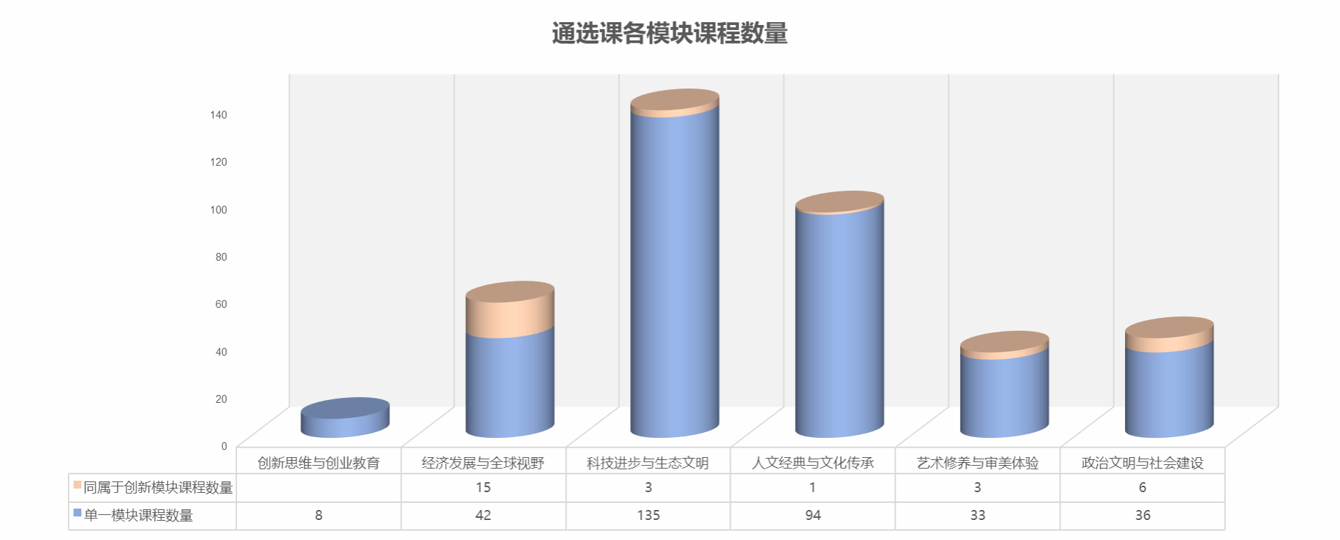 2025级及以后学生目前可选通识课共计428门,其中通选课376门,核心通识课52门(数据统计截至2025年9月),实际可选课情况以每学期开课情况为准。通识课各模块课程分布情况见下图所示: